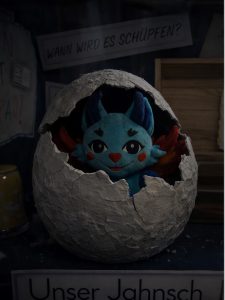 Tatsächlich passierte dann an einem Wochenende im März etwas Unglaubliches – selbstverständlich brauchte das Jahnschultier zum Schlüpfen absolute Ruhe. In einer magischen Märznacht also, bei Mondesschein, schlüpfte es und passte sich tatsächlich vom Aussehen her den Zeichnungen der Jahnschulkinder an. Zum Glück hat unsere Kamera alles aufgenommen und so habt ihr nun die einmalige Gelegenheit, diese exklusiven Bilder zu sehen: